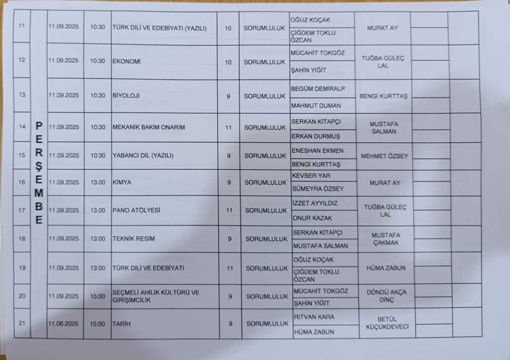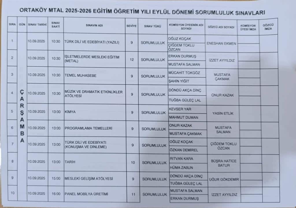 2025-2026 Eğitim Öğretim Yılı Eylül Dönemi Sorumluluk Sınav Takvimi Yayımlanmıştır.